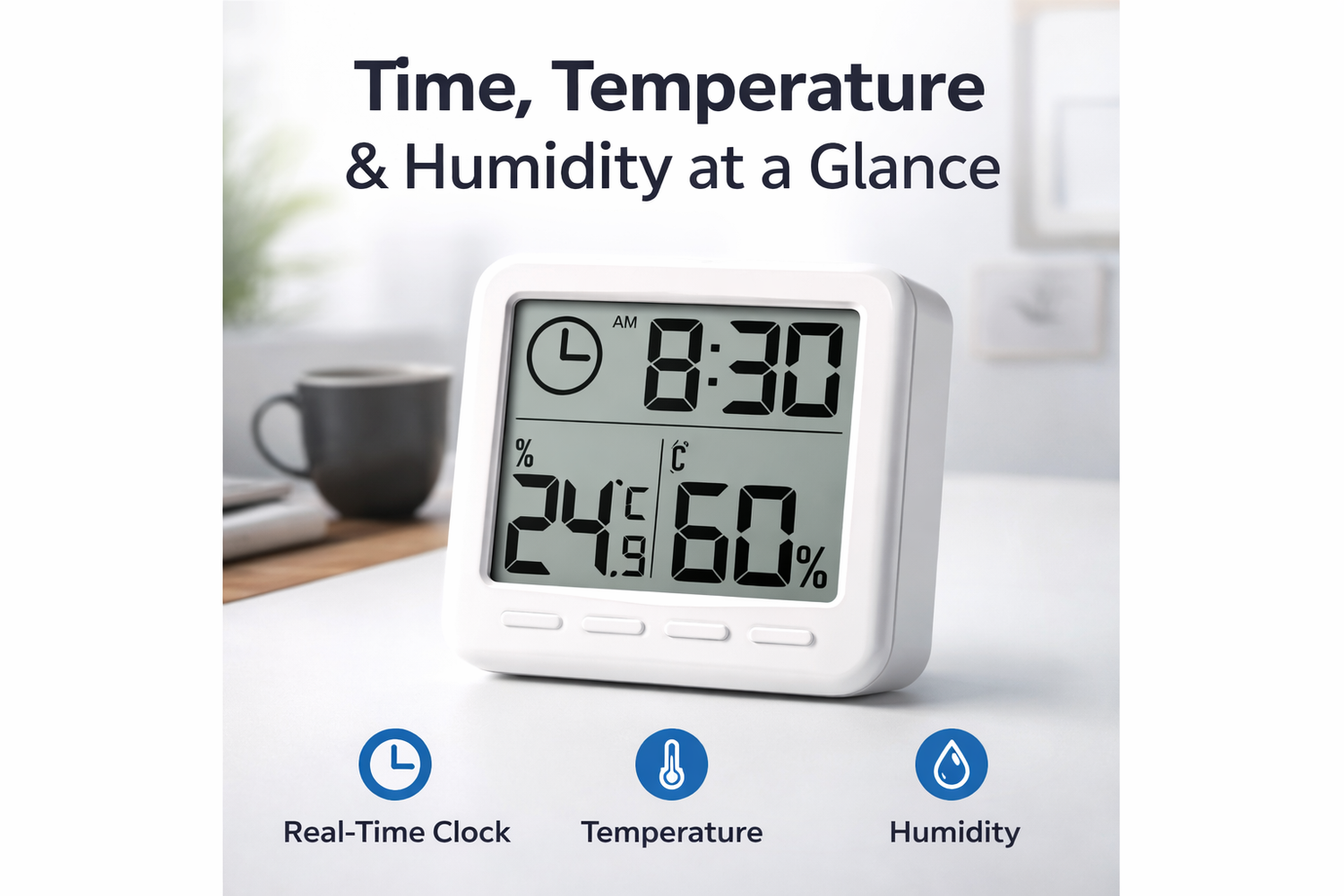 Track time, temperature, and comfort in one compact device built for everyday convenience.